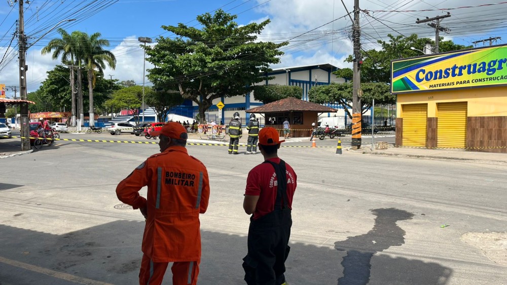 Uma viatura da Polícia Militar chegou rapidamente ao local para interditar a avenida, garantindo a segurança dos moradores e frequentadores.