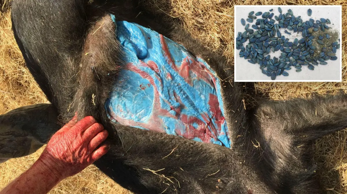 De acordo com o Departamento de Peixes e Vida Selvagem da Califórnia (CDFW), os javaporcos, híbridos de porcos domésticos e javalis selvagens, provavelmente ingeriram o veneno ao consumir iscas ou presas contaminadas. A substância impede a coagulação sanguínea, causando hemorragias internas que resultam na coloração azulada das vísceras.