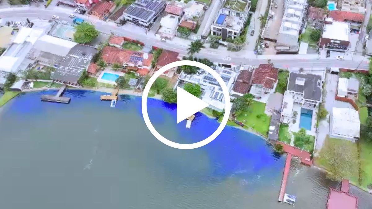 Registro de morador mostra o momento em que a mancha azul se espalhava próximo ao Canto da Lagoa, em FlorianópolisVídeo: Divulgação/AmoLagoa