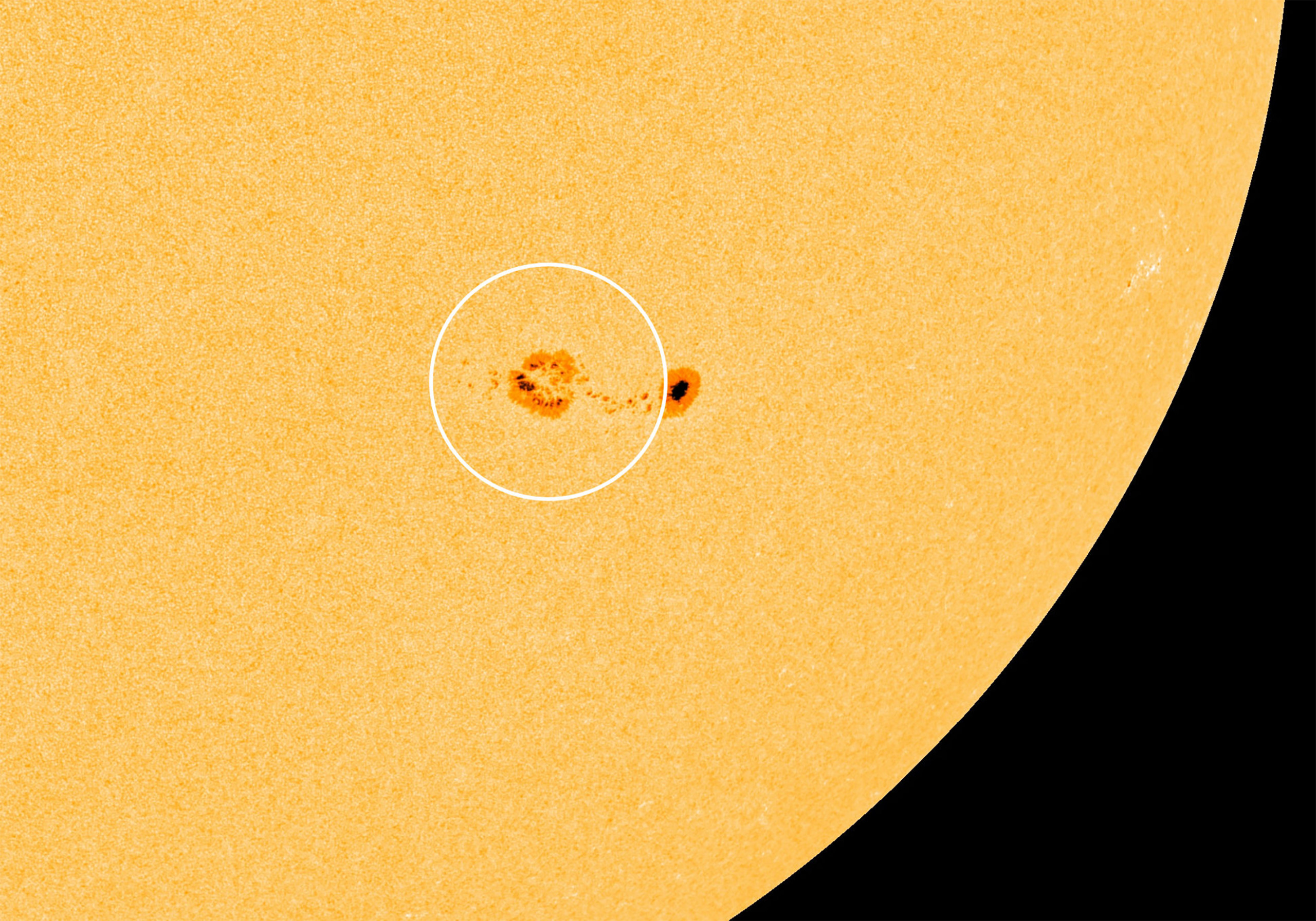 Ocasionalmente, a superfície do Sol é marcada por manchas solares, áreas mais escuras e frias causadas pelo acúmulo de campos magnéticos. Elas compõem as regiões ativas do astro, de onde podem eclodir intensas explosões.