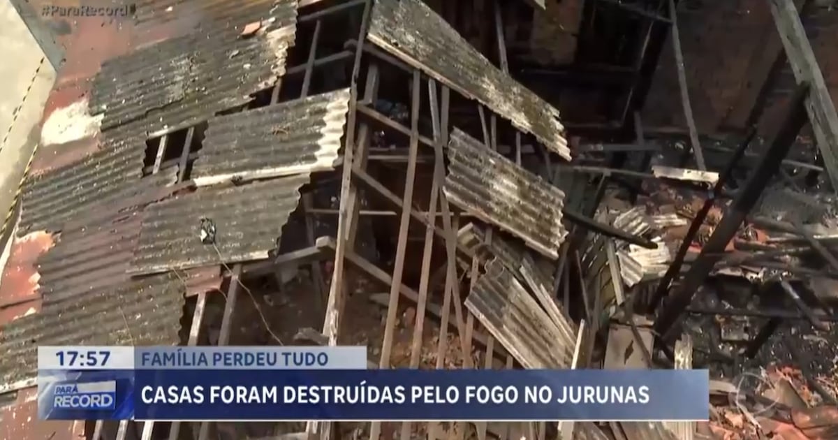 Um incêndio devastador destruiu quatro casas no bairro do Jurunas, em Belém (PA), após um vazamento de gás causar a explosão de um botijão.