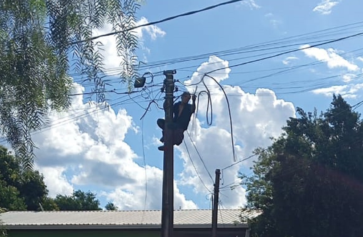 Um motoboy de Cascavel flagrou um homem em cima de um poste furtando cabos de energia no bairro Universitário. A cena, que impressiona pela ousadia e perigo, foi registrada por volta das 14h de sexta-feira (26), na Pedro Baú.