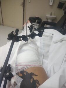 A vítima, de 44 anos, relatou para a Polícia Rodoviária Estadual (PRE) que transitava no sentido Portão/Montenegro, quando um veículo, que seria uma Volkswagen Parati, foi efetuar uma conversão à esquerda para acessar uma estrada de chão, vindo a colidir na lateral de sua moto. Após a colisão, próximo ao cruzamento da rodovia com a Estrada Oscar Melo, perto de um posto de combustíveis, o motorista da Parati não parou e seguiu viagem. A motociclista sofreu graves lesões, sendo socorrida pela ambulância da concessionária CSG. Deise Letícia está internada no hospital de Novo Hamburgo, com fraturas em três locais da perna, inclusive exposta, além de lesões no rosto e outras partes do corpo. Foi submetida a cirurgia, para a colocação de quatro pinos. Além da colisão, diz que foi arrastada por um trecho. Já o caroneiro sofreu apenas algumas escoriações.