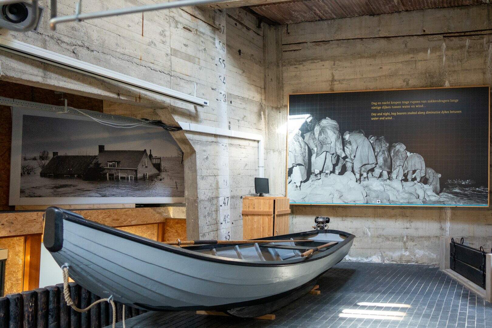 O museu está instalado em quatro grandes caixões de concreto utilizados para fechar o último rompimento do dique após a enchente. Cada seção aborda diferentes aspectos do desastre: fatos, emoções, reconstrução e o futuro da gestão hídrica nos Países Baixos.