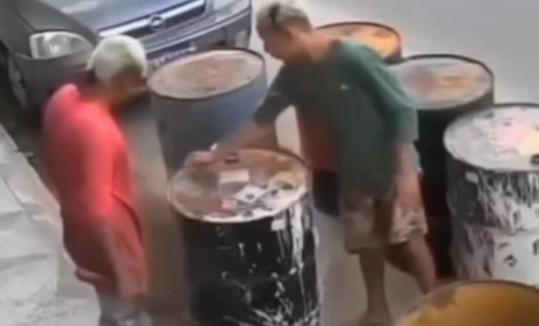 Em determinado momento, é a hora da besteira maior: leva a chama do isqueiro para aa boca ou tampa do barril fechado. Podia dar no quê? Numa violenta explosão que, por sua força, arremessou o jovem sem noção para trás.