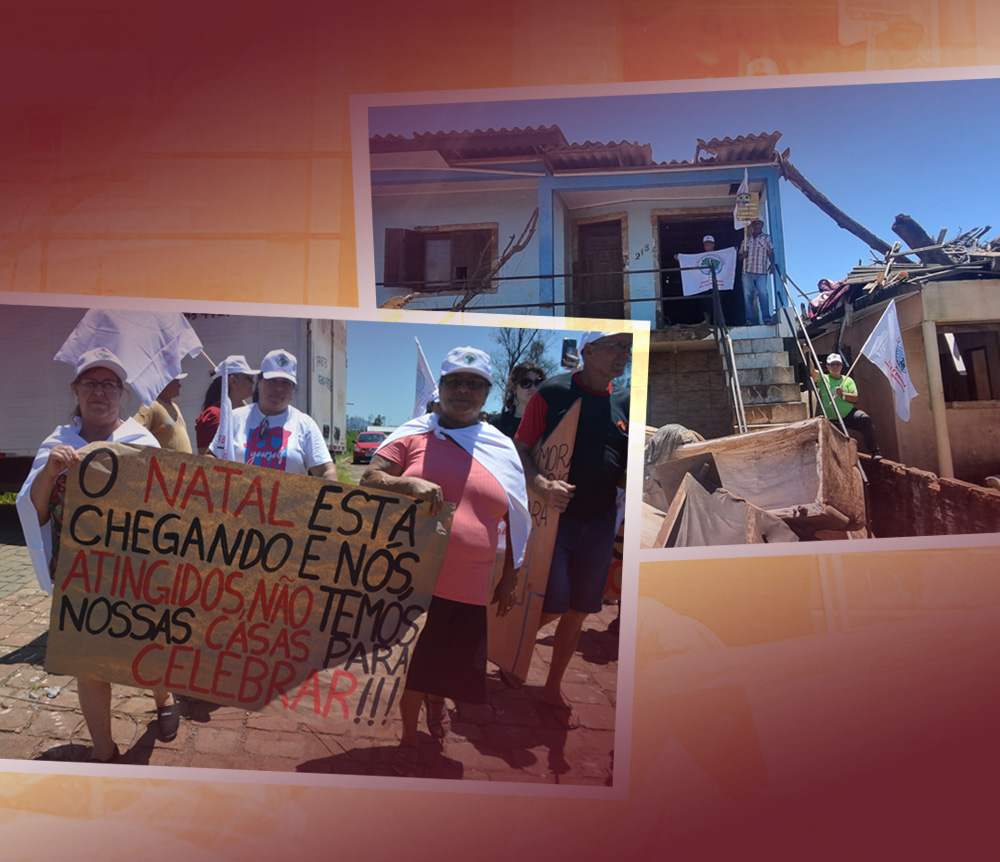 Nos últimos anos, o Movimento dos Atingidos por Barragens vem desafiando a militância a estar presente em momentos de calamidade. Nas enchentes do Rio Grande do Sul, o papel do movimento foi imprescindível com ações de curto, médio e longo prazo. Segundo Leonardo Maggi, membro do MAB e morador de Porto Alegre (RS), em setembro de 2023, já havia acontecido um evento climático bem significativo, especialmente no Vale do Taquari, e a equipe do Movimento no Estado e outros representantes do Brasil já haviam estado mais próximos da região com uma brigada de solidariedade. “Apesar de ter sido um esforço enorme em setembro de 2023, nem se compara com o desafio de maio de 2024”, comentou, acrescentando: “Neste ano, as inundações e os níveis de destruição foram diferentes. Ao longo dos rios Jacuí e Taquari, que desaguam em Porto Alegre, a precipitação foi mais violenta. O período de enchente durou cerca de cinco dias e teve um repique dez dias depois, mas, apesar de ser um tempo relativamente pequeno, foi mais violento. Onde o rio passou, não sobrou nada. As cidades simplesmente não existem mais. No caso da região metropolitana, a água subiu mais calmamente, mas ficou por muito mais tempo. As cidades ficaram alagadas entre 20 e 30 dias”.