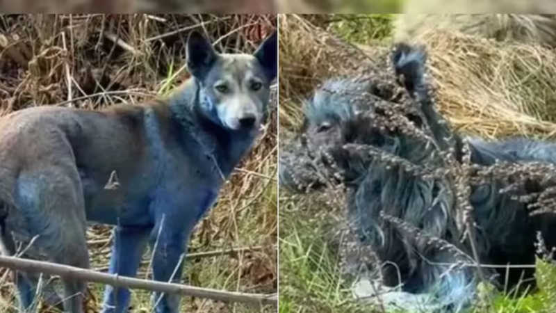 “Durante a captura para esterilização, nos deparamos com três cães completamente azuis. Não sabemos exatamente o que está acontecendo, mas acreditamos que eles possam ter entrado em contato com algum tipo de produto químico.”