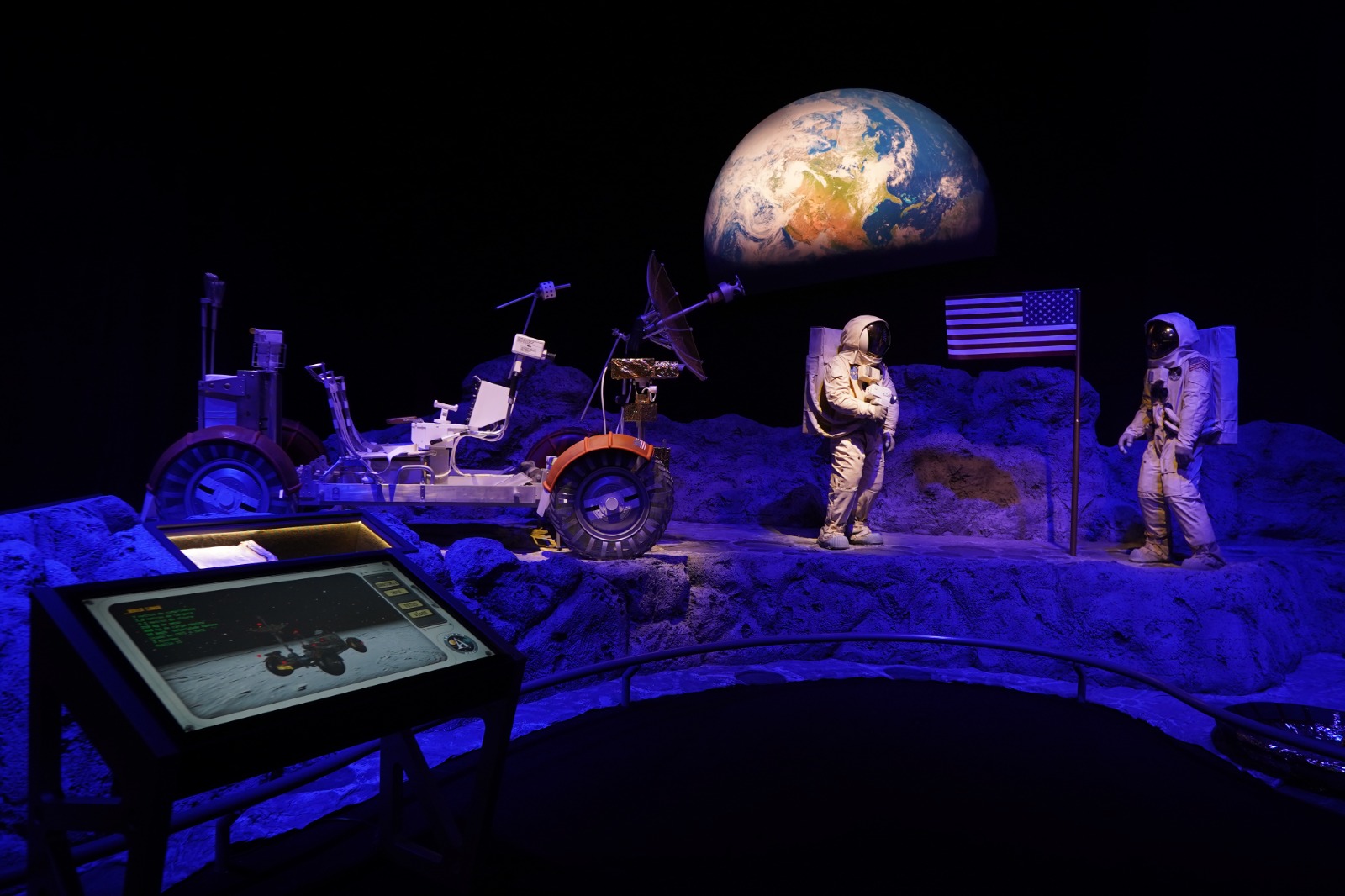 A experiência é totalmente imersiva, com cinemas, salas interativas, simuladores e cenários que recriam momentos históricos, como o controle da missão em Houston, a decolagem e a alunissagem. O visitante também descobre curiosidades sobre a rotina dos astronautas, incluindo alimentação, sono e higiene no espaço.