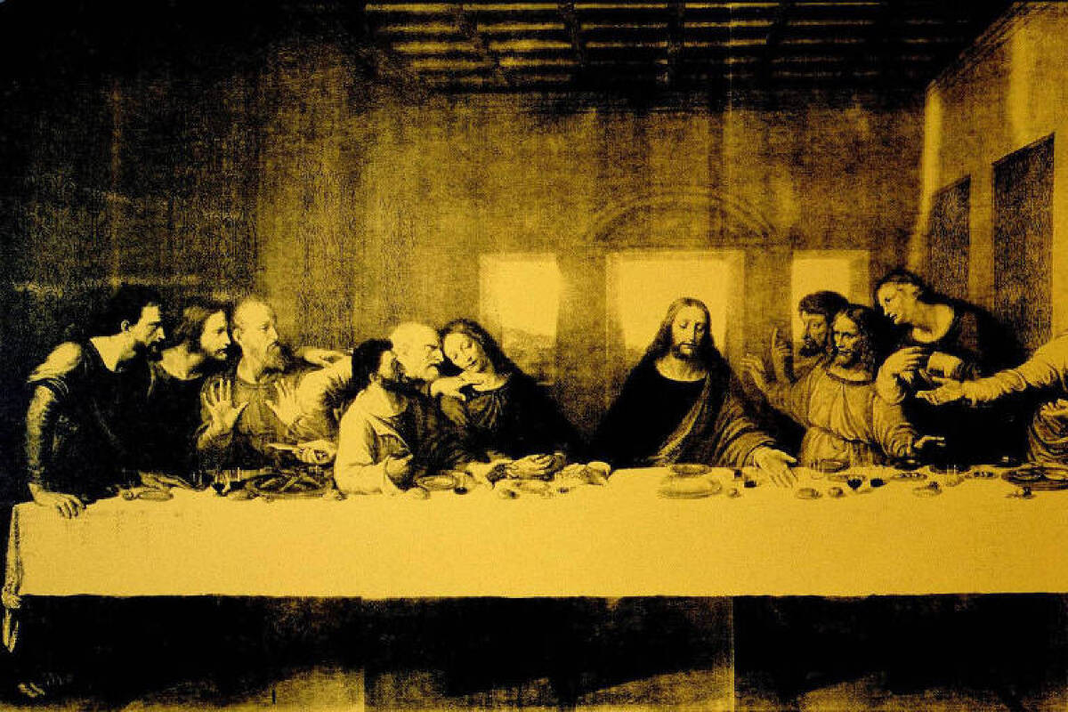 A imagem apresenta uma interpretação da famosa pintura ‘A Última Ceia’, de Leonardo da Vinci, em um estilo pop art. A obra é dividida em duas partes, com uma paleta de cores predominantemente amarela e detalhes em preto. Os personagens estão dispostos ao redor de uma mesa, com expressões variadas, e a cena é ambientada em um espaço com janelas ao fundo.’The Last Supper’, obra de Andy Warhol, releitura de ‘A Última Ceia’, de Leonardo Da VinciIsso porque o tempo é curto, até a abertura para o público em 1º de maio, as obras são avaliadas em centenas de milhões de dólares, e o clima é tenso, com Donald Trump abrindo uma temporada de caça aos museus americanos, com cortes de fundos e uma tentativa deliberada de reescrever a história dos Estados Unidos que é mostrada ao mundo.