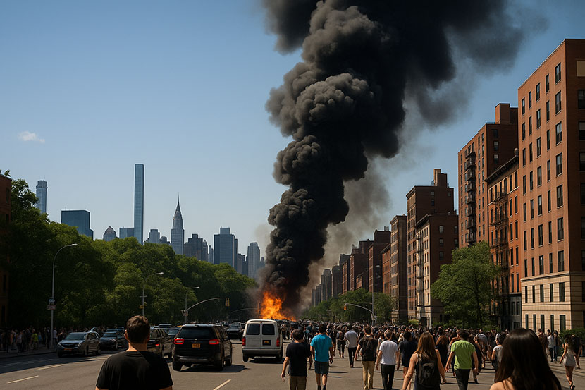 Manhattan mergulhou no caos na manhã de sexta-feira, quando uma enorme explosão atingiu o coração do centro comercial e cultural de Nova York, lançando uma enorme coluna de fumaça preta para o céu. A explosão, que ocorreu perto da Rua 95 Leste, a poucos passos do Central Park, abalou moradores, compradores e turistas, gerando cenas de medo e confusão nas ruas normalmente movimentadas. Sirenes soaram enquanto multidões saíam de lojas, cafés e prédios de apartamentos próximos, alguns agarrando seus pertences enquanto outros fugiam apenas com as roupas do corpo.