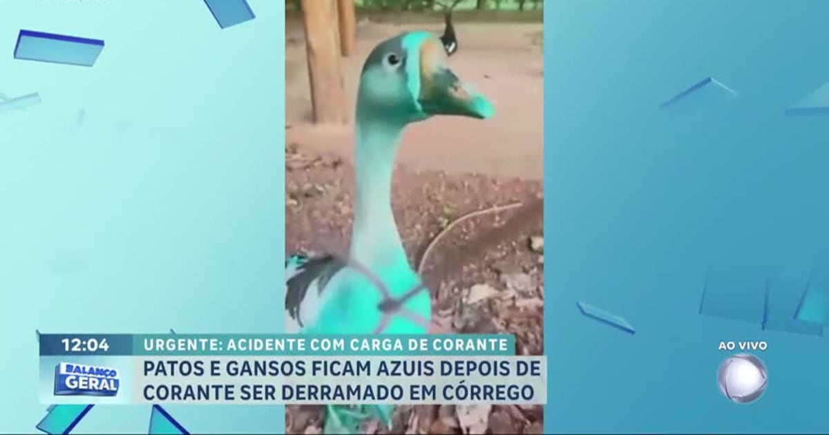 Patos e gansos de um córrego em Jundiaí, São Paulo, ficaram azuis depois que a água foi contaminada por um corante químico. Este acidente também resultou na morte de peixes no local. A contaminação ocorreu após o tombamento de um caminhão que transportava corantes para embalagens industriais.