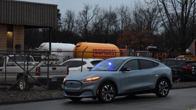 Uma vez na empresa, os bombeiros disseram que encontraram uma caminhonete tombada com vários cilindros de propano de 20 libras ao redor e embaixo dela.