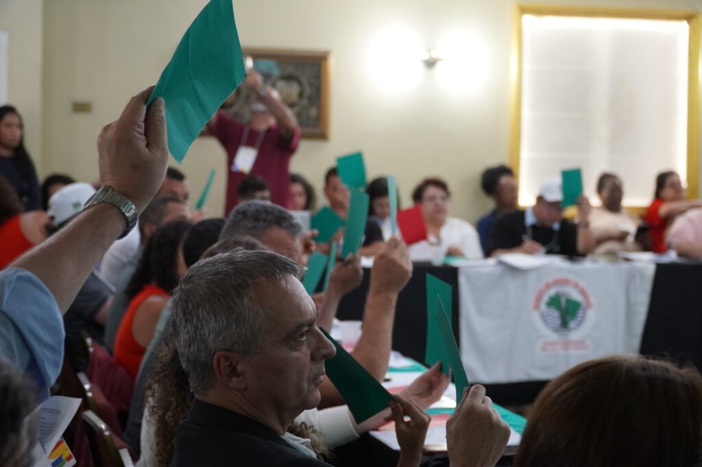 Conselheiros e conselheiras votam durante aprovação do regimento interno Foto: Thiago Matos/Aedas