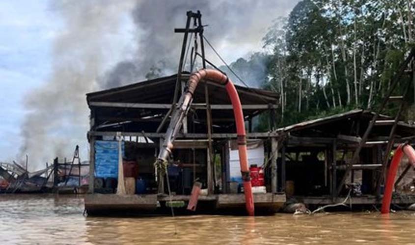 Durante as diligências foram identificadas dragas e balsas de médio e grande porte empregadas na extração, evidenciando atividade estruturada e com capacidade de extração em larga escala, distinta de práticas artesanais. Em razão da impossibilidade de remoção desses equipamentos, 49 embarcações e motores utilizados na atividade ilícita foram inutilizados no local.
