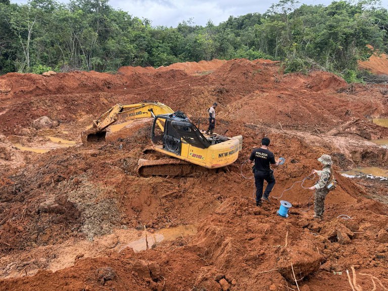 Durante a ação, quatro pás carregadeiras foram encontradas e inutilizadas no local. Além disso, uma pessoa foi presa em flagrante por posse ilegal de 51 munições.