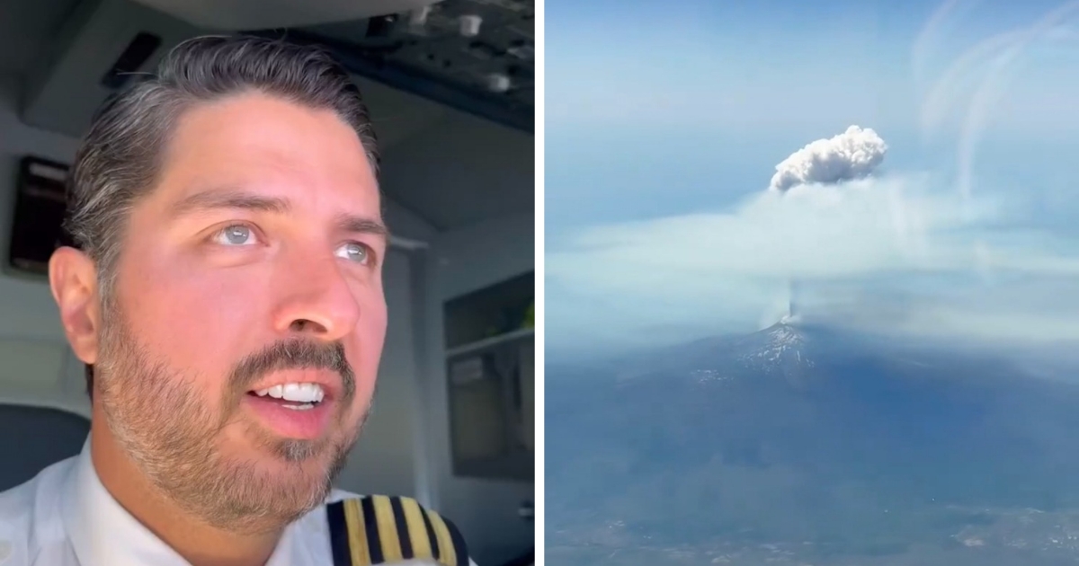 Durante a erupção, o piloto brasileiro da Qatar Airways registrou imagens impressionantes do fenômeno ao sobrevoar a região com um Boeing 787-9 Dreamliner.