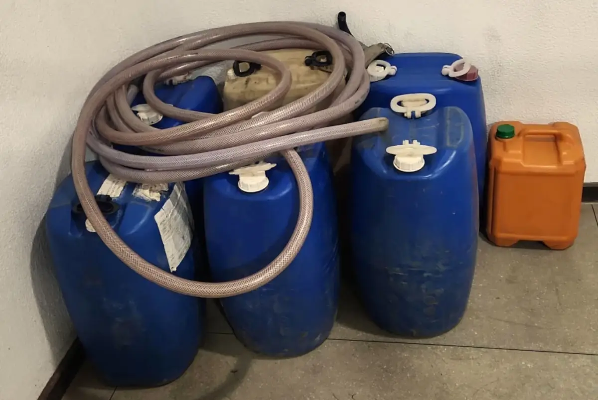No local, os policiais civis encontraram diversos recipientes plásticos já carregados. Durante a abordagem, os suspeitos admitiram que haviam furtado o material de caminhões pertencentes a uma empresa de logística.