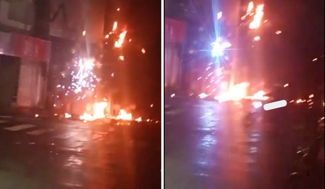 Poste pega fogo e deixa moradores sem energia elétrica em bairro de Cariacica