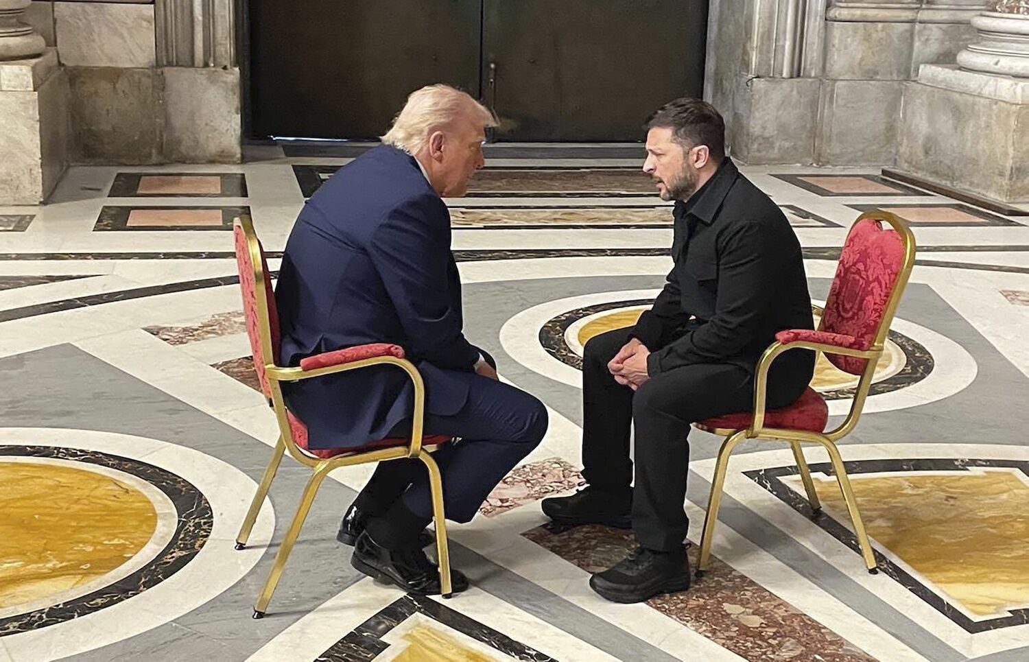 Volodymyr Zelenskyy e Donald Trump no funeral do Papa Francisco