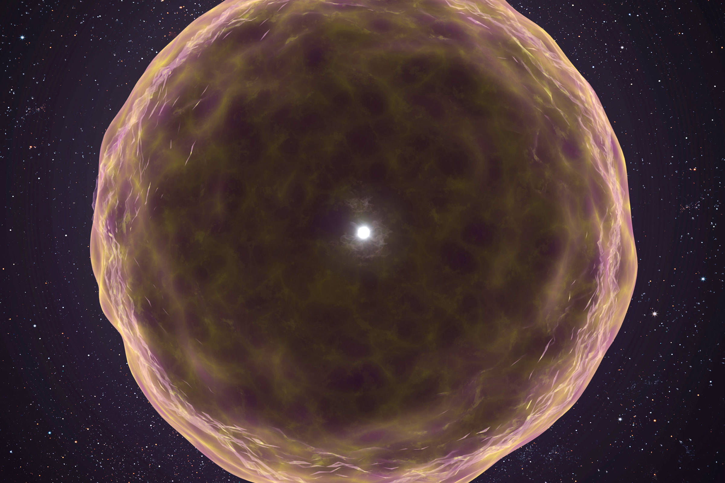 Geralmente, quando uma estrela morre, os astrônomos observam uma mistura de elementos combinados e lançados no Cosmos. Porém, por alguma razão, essa estrela perdeu suas camadas ao longo de milhares de anos antes de explodir.