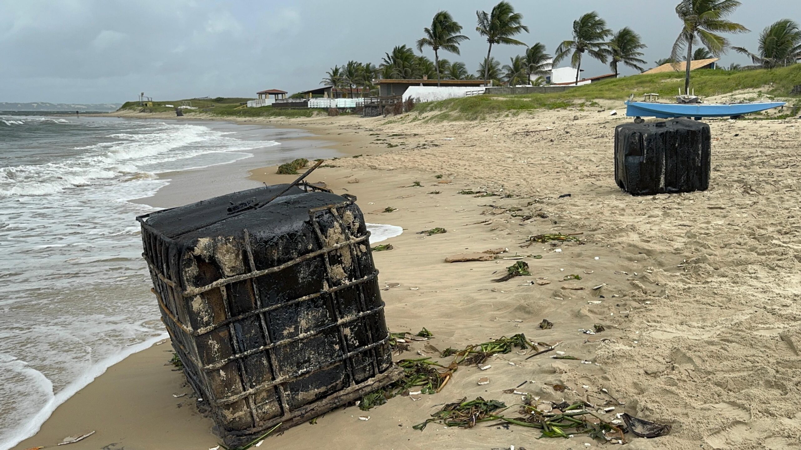 “Existia um contêiner que continha alguns alimentos, como carnes, frutas, e também existiam alguns galões de óleo. E esses galões de óleo estavam abertos e espalhando óleo pela praia. E alguns objetos, inclusive, mergulhados no óleo”, explicou o secretário de Meio Ambiente, Urbanismo e Mudanças Climáticas de Extremoz, Jair Damasceno.