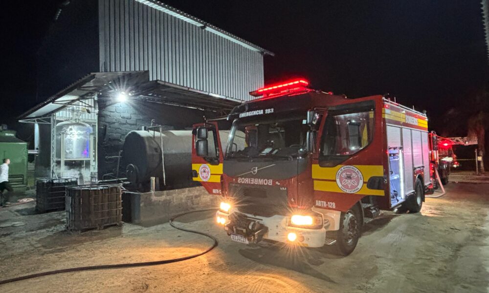 Guarnição foi acionada por volta das 21h20, em uma empresa de produtos químicos, localizada no distrito industrial