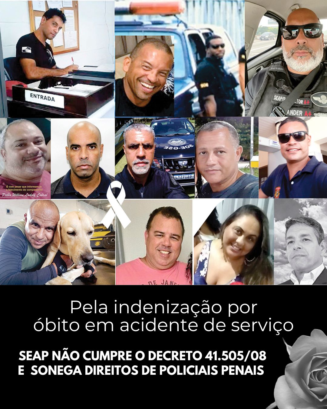 Na quinta-feira (20/02), uma comissão de familiares dos policiais penais falecidos em acidente de serviço (COVID) foi recebida pela Chefe de Gabinete da Seap, policial penal Carla Sibilio, que informou que a secretária Maria Rosa quer pagar as indenizações, mas “que não tem respaldo jurídico para fazê-lo. As famílias entregaram requerimentos de isonomia, para que a secretária estenda aos demais processos os efeitos aplicados ao SEI-210053/001602/2020, cujo deferimento foi publicado no DOERJ Ano L, n°. 132, Parte I, do Poder Executivo, datado de 19/07/2024 e reiterado pela secretária em 16/09/2024, concedendo o direito ao Benefício Especial de Caráter Indenizatório pelo óbito em Acidente de Serviço, conforme Decreto n°. 41.505/08. Apesar disso, o processo permanece paralisado no gabinete do ordenador de despesas e Subsecretário de Administração Penitenciária, o sociólogo Alexander Maia, inerte desde 16/09/2024.