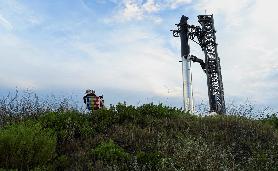 O propulsor Super Heavy, de 70 metros de altura, e sua metade superior, a Starship, de 52 metros de altura, estavam montados em um suporte de lançamento nas instalações de foguetes Starbase, da SpaceX, antes do horário de decolagem previsto para as 19h30 no horário do leste dos EUA (20h30 no horário de Brasília).
