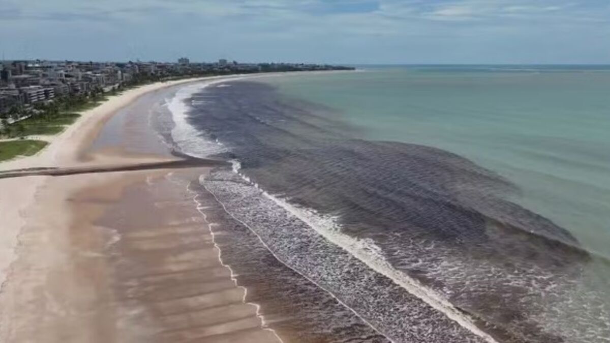Mancha escura invade mar no Litoral da Paraíba. TV Cabo Branco/Reprodução