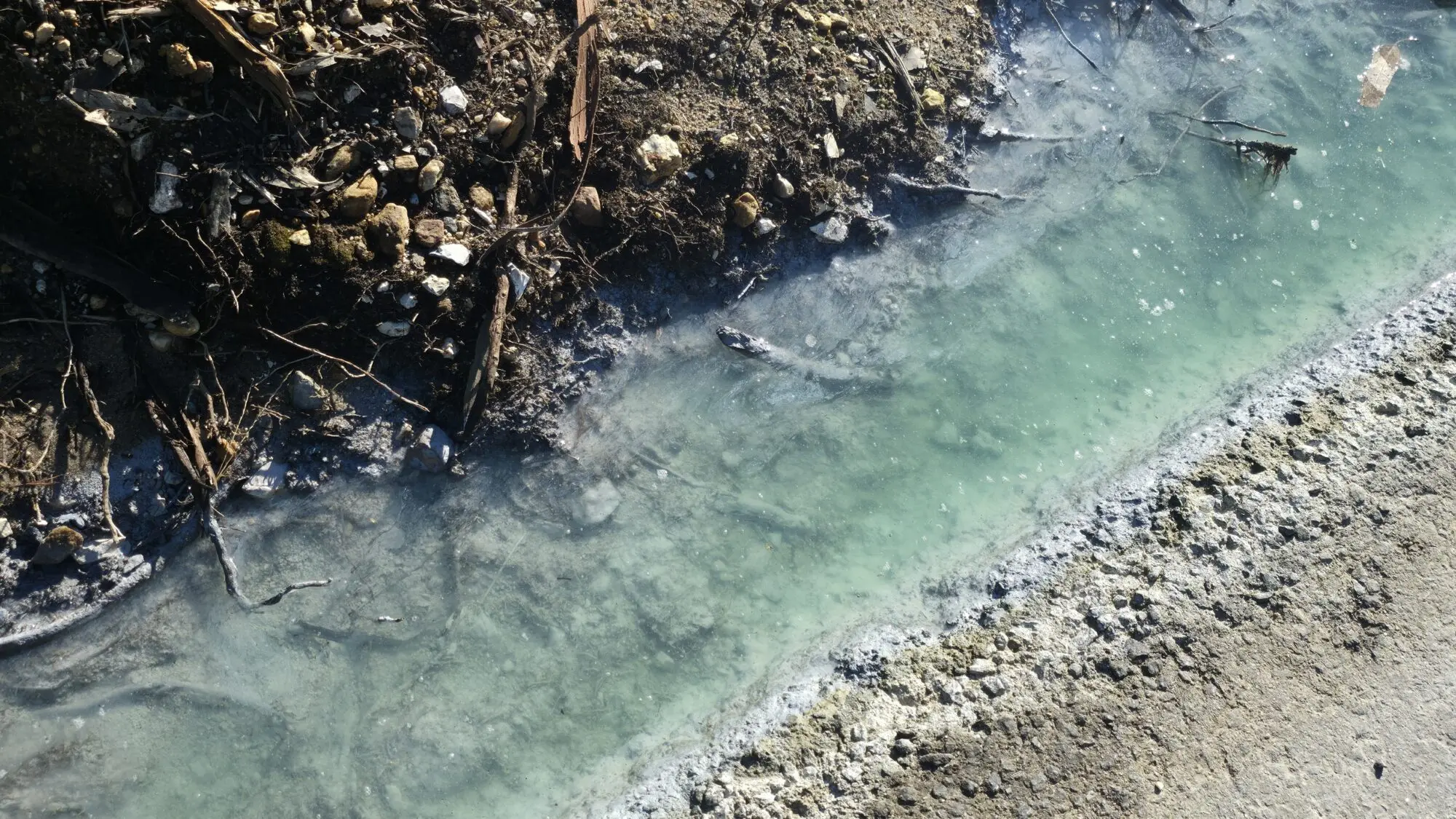 A anomalia cromática da água, associada à formação de depósitos densos e a sinais de degradação do pavimento, sugere que poderá estar em causa a descarga de um efluente industrial. Entre as possibilidades encontram-se resíduos provenientes de processos de metalomecânica, tinturaria, galvanização, plásticos ou outras atividades existentes na zona, embora a origem exata não esteja ainda identificada.