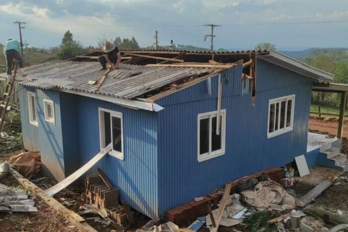 Na vizinha São Miguel do Oeste, comunidades também registraram destelhamentos e queda de árvores. No Norte catarinense, cidades como Mafra, Canoinhas e Joinville relataram estragos.