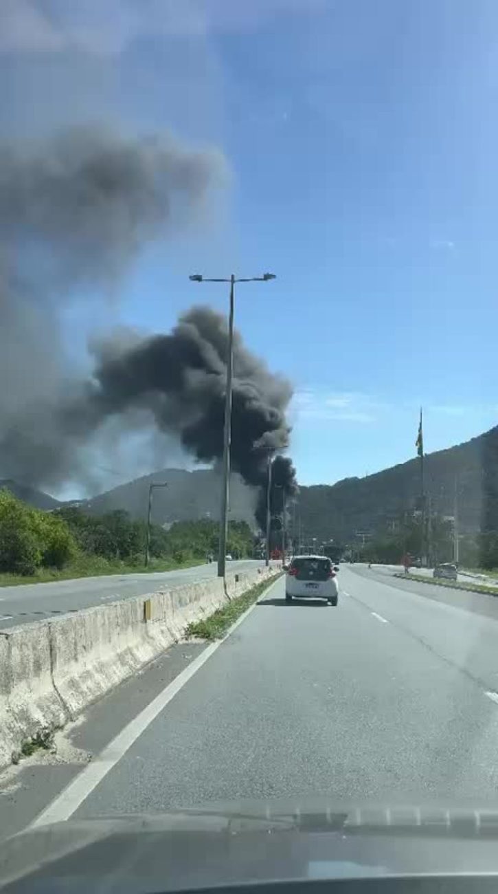• FRAME - Ônibus pegou fogo na SC-401, em frente ao Floripa Shopping - João Cavallazzi