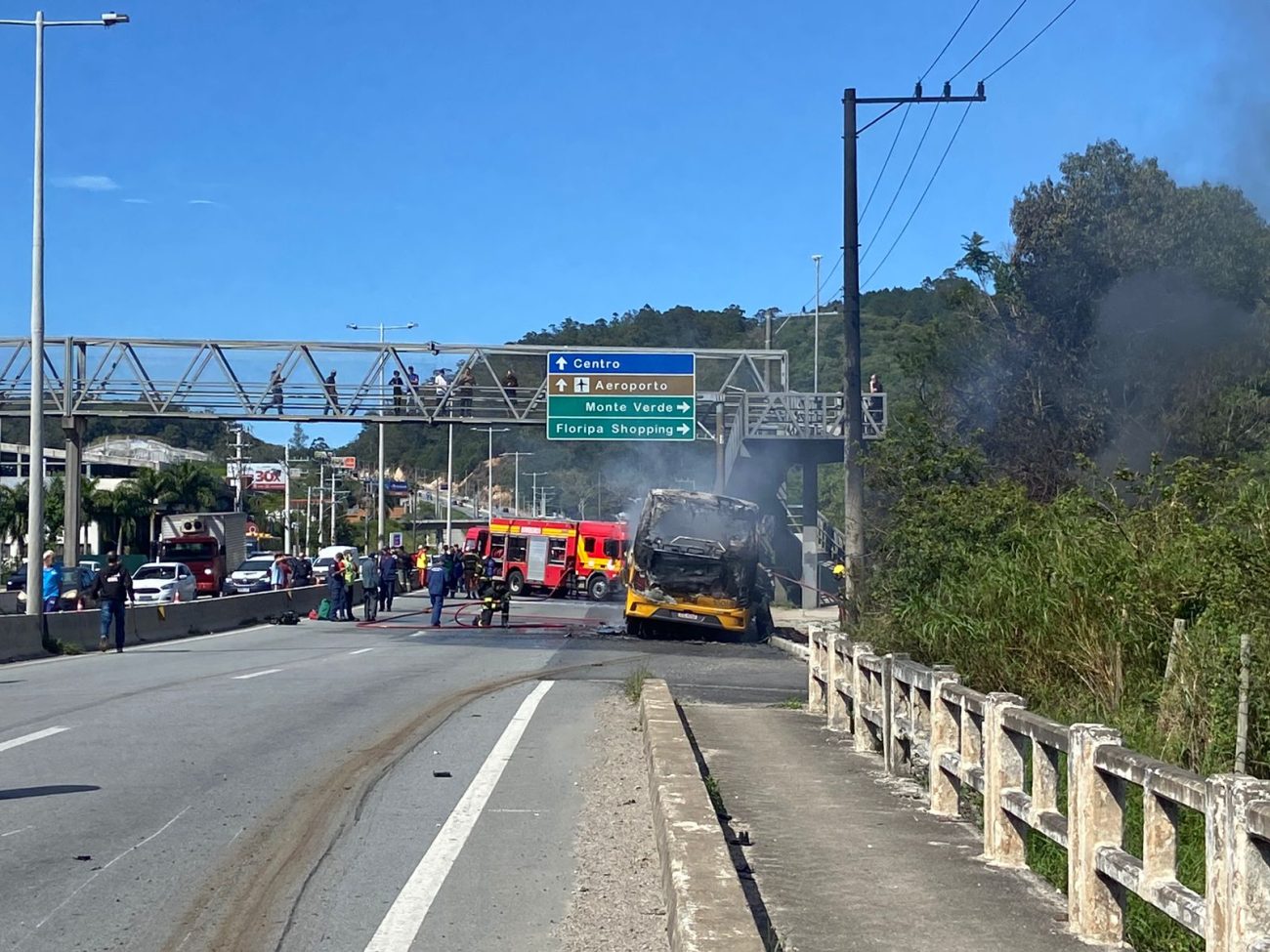 Um ônibus pegou fogo na SC-401em Florianópolis (SC), próximo ao Floripa Shopping, na manhã desta quarta-feira (08), por volta das 9h. O acidente aconteceu no sentido ao centro da ilha. Uma das vias foi temporariamente bloqueado para o tráfego de veículos, mas horas depois foi liberado.