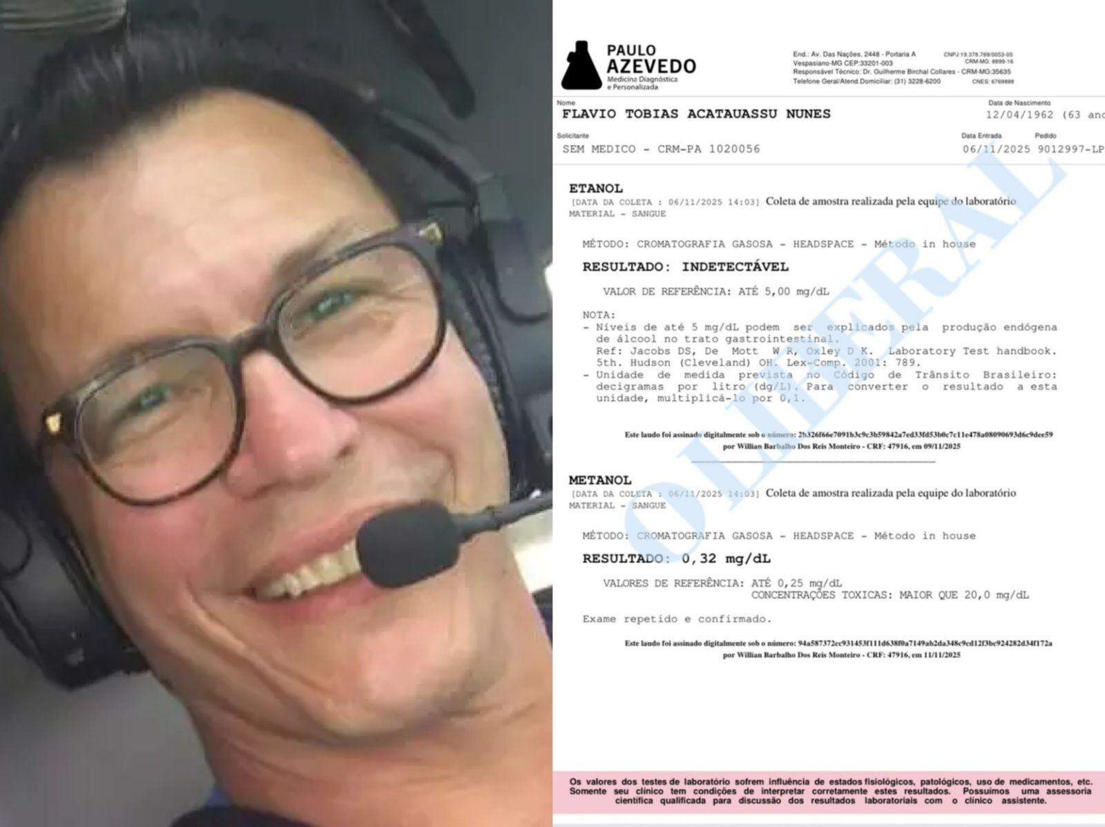 Flávio afirma ter alertado aos profissionais de saúde que suspeitava de intoxicação por metanol, mas diz que a unidade não solicitou exame específico. Segundo ele, foram coletadas amostras de sangue e urina, e administrados medicamentos apenas para alívio dos sintomas. Após receber os resultados, teria sido informado de que não havia alterações e foi orientado a retornar para casa, repousar e se hidratar.