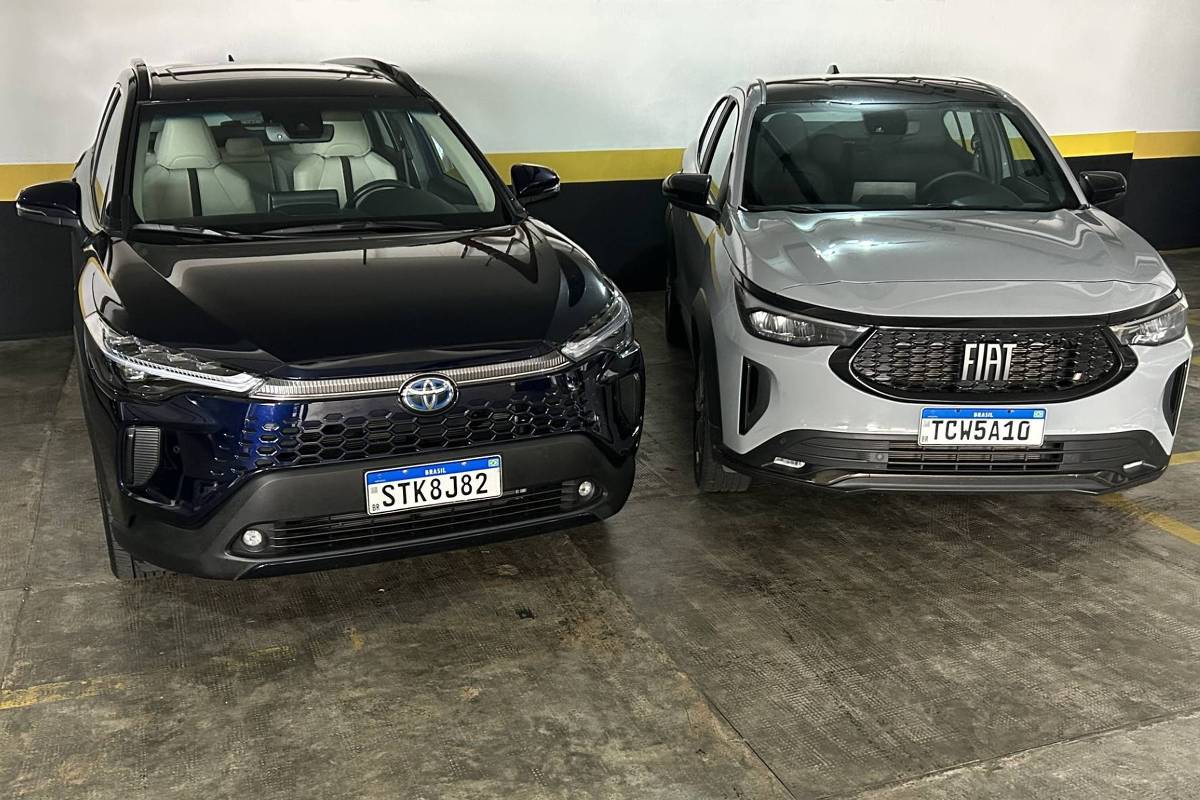 Os carros escolhidos foram os SUVs Fiat Fastback na versão Impetus T200 Hybrid (R$ 161.990) e o Toyota Corolla Cross XRX 1.8 Hybrid (R$ 212.890).