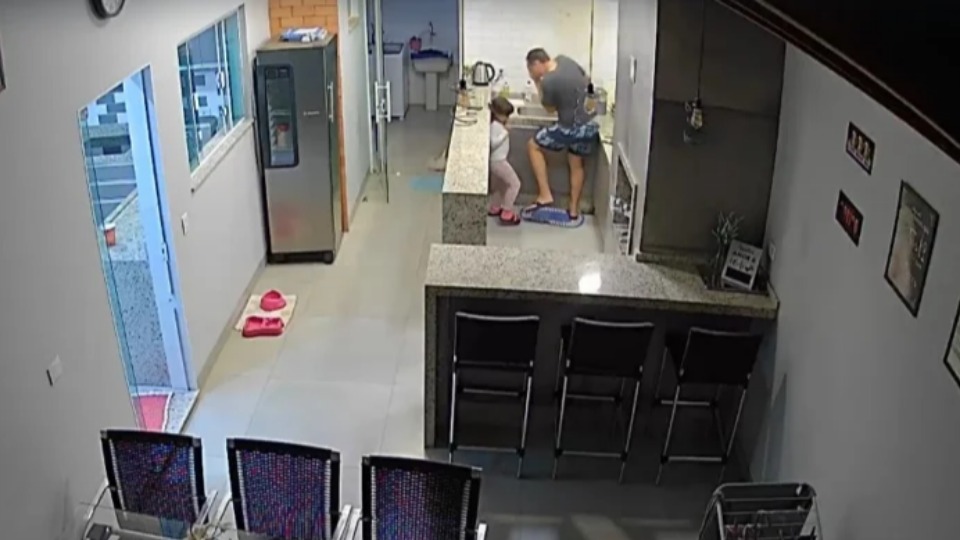 Imagens de câmeras de segurança flagraram o momento em que a tampa do utensílio foi arremessada para o alto logo após ele retirar a panela do fogão e manuseá-la na pia. No vídeo, é possível ver pai e filha próximos ao local da explosão; ambos correm após o impacto.