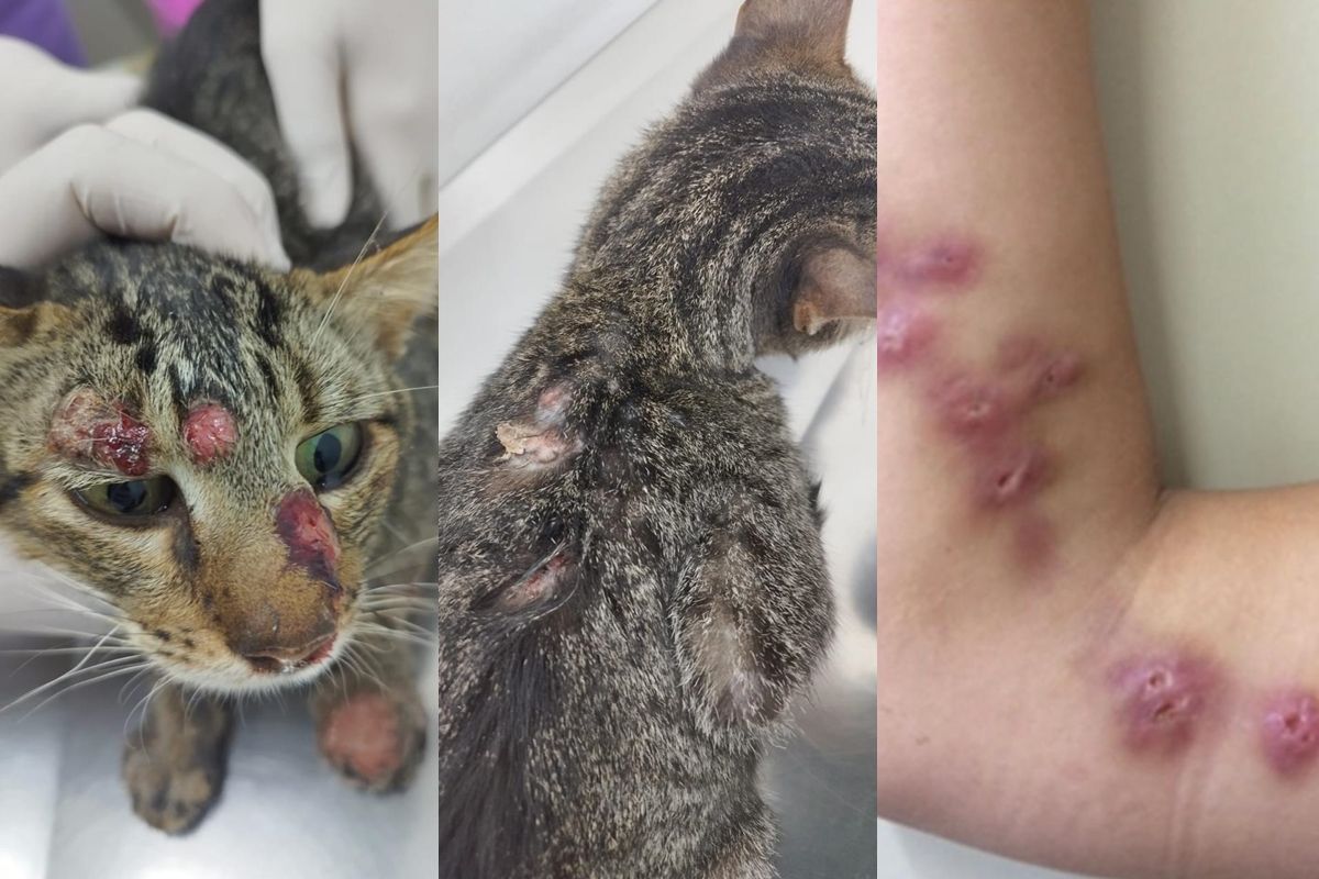 Ou também há a possibilidade de plantas estarem contaminadas com fungo, o gato contaminado passou naquela planta e o humano vai lá e se arranha nela.