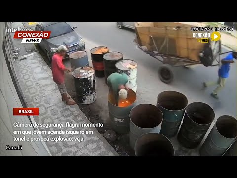 Um vídeo de câmera de segurança registrou um acidente envolvendo dois jovens durante uma brincadeira com tonéis na Zona Oeste do Recife. As imagens começaram a circular nas redes sociais nesta semana. Veja o vídeo.