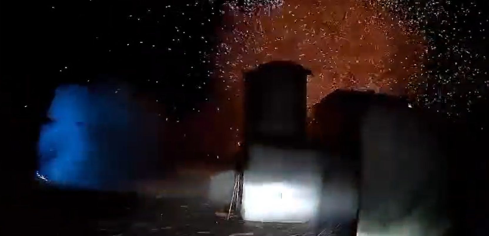 As imagens captadas mostram o instante em que a explosão ocorre e lança uma onda de destruição no local. Com a força do impacto, objetos foram arremessados a metros de distância e parte da estrutura da fábrica ficou comprometida.