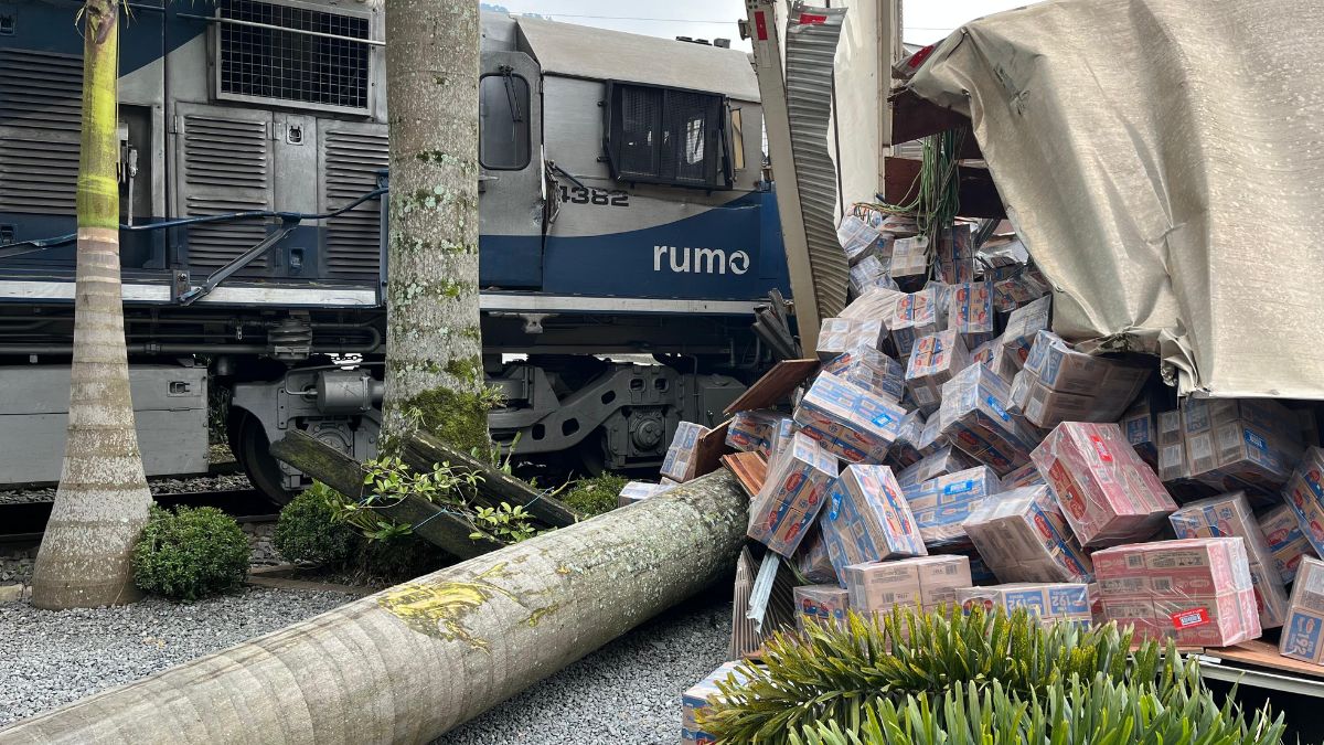 O acidentde ocorreu por volta das 6h30. O Caminhão teria parado Sobre O Trilho e Foi atingido Pelo Trem na parte final do veículo. Com o impacto, o Baú Se Abriu Ea Carga, De Produtos Alimentícios, Ficou Esparramada Pela via. Além Disso, Uma Palmeira Foi Derrubada.